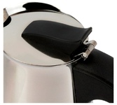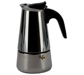 На 4 чашки. Нерж. сталь. Ручка и кнопка из нейлона (не нагреваются). Предохранительный клапан давления. Можно использ-ть на газ. плитах.Гейзер состоит из нижней емкости для воды, спец. сита-фильтра для кофе и верхнего чайничка для уже готового напитка.
