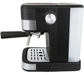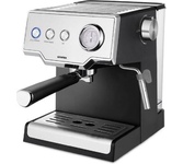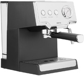 Кофеварка рожковая. Мощность: 750 вт, Давление помпы: 5 бар, Съемный резервуар для воды: 0,24 литра, Капучинатор, Подогрев чашек, Приготовление капучино, Приготовление эспрессо, Противокапельная система, Съемный лоток для сбора капель, Материал корпуса: нержавеющая сталь/пластик, Тип используемого кофе: молотый, Цвет: Черный/серебро