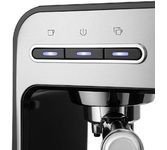Кофеварка рожковая. Мощность: 1350 вт, Давление помпы: 15 бар, Съемный резервуар для воды: 1 литр, Капучинатор, Индикатор уровня воды, Индикация включения, Подогрев чашек, Подсветка, Приготовление капучино, Приготовление эспрессо, Съемный лоток для сбора капель, Материал корпуса: нержавеющая сталь/пластик, Особенности: Итальянская помпа фирмы Ulka; Кофеварка с термоблоком обеспечит безупречный вкус напитка, быстроту приготовления, уменьшить затраты на электроэнергию; Программирование объёма порции кофе, Тип используемого кофе: молотый, Цвет: Серебро