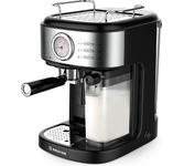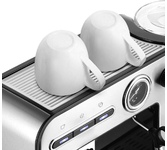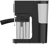 Давление 19 бар / Резервуар для воды 1.4 л / Резервуар для молока 0.39 л / Мощность 1450 Вт / Электронное управление / Корпус из нержавеющей стали / Автоматический капучинатор / Регулировка крепости кофе / Выбор объема порции кофе и молока / Индикатор необходимости очистки / Многоразовый фильтр и мерная ложка в комплекте / Съемный поддон для сбора жидкости / Откидная площадка для кружек малого объёма
