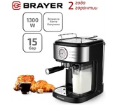 1128BR Кофеварка BRAYER, 1350 Вт, 20 бар, автомат.капучин, резерв 1,5л, резер.д.молока 0,5 л