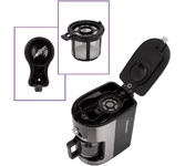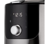 Кофеварка капельная, мощность 1200 Вт, объем 1,4 л, тип используемого кофе: молотый, тип напитка: американо, лунго, ристретто, эспрессо. Контроль крепости кофе, индикация уровня воды, работы, противокапельная система, таймер. Цвет: черный.