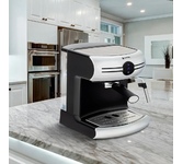 Кофеварка рожковая. Мощность: 850 вт, Давление помпы: 15 бар, Съемный резервуар для воды: 1,5 литра, Капучинатор, Индикатор уровня воды, Индикация включения, Подогрев чашек, Приготовление капучино, Приготовление эспрессо, Съемный лоток для сбора капель, Материал корпуса: нержавеющая сталь/пластик, Особенности: Итальянская помпа фирмы Ulka, Тип используемого кофе: молотый, Цвет: Черный/серебро.