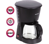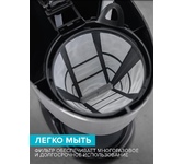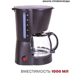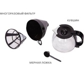 Мощность 600 Вт/ Объем 1250 мл . Многоразовый фильтр.Мерная ложка. Защита от протекания кофе. Нагревательный элемент с антипригарным покрытием