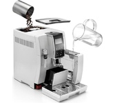 Тип: кофемашина. Мощность: 1450. Давление помпы: 15. Тип используемого кофе: молотый/зерновой. Капучинатор: есть. Объем резервуара для воды: 1.8. Одновременное приготовление двух порций: есть. Информационный дисплей: есть. Автоочистка от накипи: есть. Материал корпуса: пластик. Особенности: Интуитивная панель управления с LCD дисплеем и тактильными кнопками. Благодаря отдельной кнопке My Menu можно составить специальное меню напитков, которые легко настраивать и сохранять настройки в памяти кофемашины. 4 предустановленных напитка (эспрессо, кофе, лонг /американо и доппио+).. Ширина товара: 23.6. Высота товара: 34.8. Глубина товара: 42.9. Вес товара: 9.5. Регулируемая по высоте подставка для чашек: есть. Тип капучинатора: ручной. Габариты упаковки (ед) ДхШхВ: 0.5x0.31x0.41. Вес упаковки (ед): 5.5. Гарантия: 36 мес.. Цвет: белый. Напитки, приготовливаемые автоматически: капучино, эспрессо. Съемные элементы: блок заваривания, дренажный отсек для капель, отсек для отработанного кофе. Регулировка: жесткости воды,