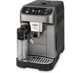 Тип: кофемашина. Мощность: 1450. Давление помпы: 15. Тип используемого кофе: молотый/зерновой. Капучинатор: есть. Встроенная кофемолка: есть. Объем резервуара для воды: 1.9. Одновременное приготовление двух порций: есть. Информационный дисплей: есть. Автоочистка от накипи: есть. Подача пара и горячей воды: есть. Регулируемый по высоте дозатор кофе: есть. Автоматическое выключение: есть. Встроенная программа самоочистки: есть. Тип капучинатора: автоматический. Кувшин для молока: есть. Объем емкости для молока: 500. Габариты упаковки (ед) ДхШхВ: 0.5x0.3x0.4. Вес упаковки (ед): 11.4. Гарантия: 12 мес.. Цвет: титановый/черный. Напитки, приготовливаемые автоматически: американо, капучино, латте макиато, эспрессо. Съемные элементы: дренажный отсек для капель, резервуар для воды. Регулировка: крепости напитка, объема напитка, степени помола, температуры напитка. Капучинатор: автоматический. Функции: регулировка: крепости напитка, объема напитка, степени помола, температуры напитка. Мощность: 1450 Вт. Давление помпы: