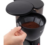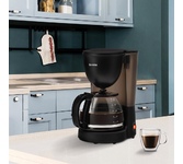 Кофеварка капельная. Мощность: 600 вт, Съемный резервуар для воды: 1,25 литра, Фильтр, Индикатор уровня воды, Индикация включения, Плита автоподогрева, Противокапельная система, Материал корпуса: пластик, Тип используемого кофе: молотый, Цвет: Черный