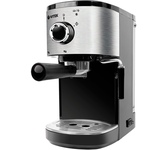 Кофеварка рожковая. Мощность: 1450 вт, Давление помпы: 15 бар, Съемный резервуар для воды: 1,25 литра, Капучинатор, Индикатор уровня воды, Индикация включения, Подогрев чашек, Приготовление капучино, Приготовление эспрессо, Съемный лоток для сбора капель, Материал корпуса: нержавеющая сталь/пластик, Особенности: Итальянская помпа фирмы Ulka; Кофеварка с термоблоком обеспечит безупречный вкус напитка, быстроту приготовления, уменьшить затраты на электроэнергию, Тип используемого кофе: молотый, Тип: эспрессо, Цвет: Черный/серебро