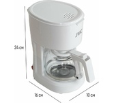 Мощность 300-350 Вт. Ёмкость резервуара/кружки 125 мл/150 мл. Тип капельная. Размер устройства 132 х 116 х 180 мм.