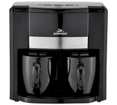 Кофеварка капельная; Основной цвет: Черный; Дополнительный цвет: Серебристый; Современный дизайн; Легкость в эксплуатации; Съемный фильтр для кофе; Автоотключение; Объем резервуара для воды: 300 мл; Объем резервуара для кофе: 300 мл; Материал корпуса: Пластик; Используемый кофе: молотый; Световой индикатор работы; Длина сетевого шнура: 1м; Прорезиненные ножки; Две керамические кружки; Мощность: 500Вт; Электропитание 220-240В, 50Гц.