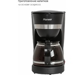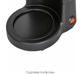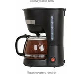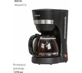 Мощность 600 Вт Резервуар для воды 0.6 л Использукемый кофе - молотый Индикатор уровня воды Противокапельная система Функция автоподогрева Материал корпуса - пластик Цвет черный Срок гарантии 12 мес