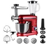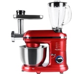 Многофункциональный кухонный комбайн мощностью 1500 Вт с 6 скоростями и импульсным режимом (от 70 до 220 об/мин) станет незаменимым помощником на кухне. Прибор работает от сети 220-240 В (50-60 Гц) и оснащен 4.5-литровой чашей из нержавеющей стали и 1.5-литровым стеклянным блендером, сочетая функции мясорубки, блендера, планетарного миксера и овощерезки (докупается отдельно). Прочный АБС-пластиковый корпус в железно-сером цвете дополнен LED-индикатором работы и удобным рычагом для подъема рабочей головки. Особенности включают плавную регулировку скорости, импульсный режим, ножки-присоски для устойчивости и простую смену насадок. В комплекте: металлическая чаша, защитная крышка, крюк для теста, плоский битер, венчик для взбивания, блендер, мясорубка (с насадками для колбасок и кеббе), руководство пользователя. Устройство упаковано в подарочную и транспортировочную коробки, а уровень шума менее 75 дБ делает работу комфортной.