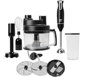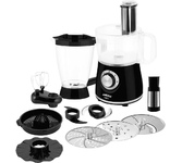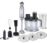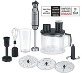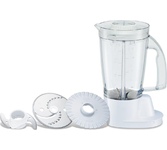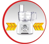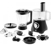 Номинальная потребляемая мощность: 550 Вт Максимальная мощность: 1000 Вт 2 скоростных режима 8 основных функций: Приготовление напитков, Отжим сока из цитрусовых, Замешивание теста, Взбивание, Нарезка, Шинковка, Тёрка, Измельчение КОМПЛЕКТАЦИЯ: Чаша для измельчения (объём 1,2 л) Нож для измельчения Чаша блендера (объём 1,75 л) Венчик для взбивания Насадка для густого теста Диск для приготовления эмульсии Насадка для отжима сока из цитрусовых Насадка-терка для драников Насадка-терка Насадка-нарезка/шинковка Толкатель
