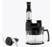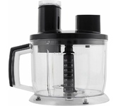 Описание КОМПЛЕКТАЦИЯ: Чаша для измельчения (объём 2,0 л) Нож для измельчения Мерный стакан для смешивания (объём 0,6 л) Насадка венчик Насадка миксер Насадка блендер с 4-х лопастным ножом Насадка для нарезки кубиками Насадка для приготовления пюре Диск-тёрка для драников Двусторонний диск для терки и нарезки/шинковки Толкатель Характеристики Номинальная потребляемая мощность: 550Вт Максимальная мощность: 1500 Вт Технология Easy Touch - удобное и многофункциональное управление одной кнопкой Плавная регулировка скорости 9 основных функций: приготовление пюре, нарезка кубиками, приготовление напитков, замешивание теста, взбивание, нарезка, шинковка, тёрка, измельчение