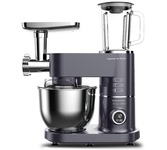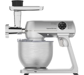 Планетарный миксер с 3-мя насадками Мясорубка Блендер Насадка «Кебби» для приготовления сосисок и кебаб 8 скоростных режимов с плавным переключением + импульсный режим DMP двойная защита двигателя (от перегрева, от перегрузки) PowerMix – планетарное вращение насадок Чаша 5,5 л из нержавеющей стали с ручкой для удобства Крышка чаши – для защиты от брызг, с воронкой для добавления ингредиентов во время приготовления Отсек для намотки сетевого шнура Non Slip Effect – прорезиненные нескользящие ножки Комплектация насадок: насадка для смешивания крюк для замешивания теста венчик для взбивания насадка-мясорубка с 2 дисками из нержавеющей стали (5 и 7 мм) насадка "Кеббе" для приготовления сосисок и кебаб кувшин блендера из высокопрочного стекла, 1,5 л Максимальная мощность: 1 200 Вт