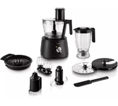 Мощность: 1300. Емкость основной чаши: 3.4. Материал оcновной чаши: пластик. Емкость чаши блендера: 2.2. Количество скоростей: 12. Импульсный режим: есть. Количество вставок/дисков: 6. Соковыжималка: есть. Блендер: есть. Измельчитель: есть. Насадка для теста: есть. Насадка для взбивания: есть. Терка: есть. Шинковка: есть. Материал чаши блендера: пластик. Максимальный вес теста: 1.7. Колка льда: есть. Нож из нержавеющей стали: есть. Мойка съемных частей в посудомоечной машине: ДА. Особенности: 3 предустановленные кнопки. Материал корпуса: пластик. Габариты упаковки (ед) ДхШхВ: 0.51x0.32x0.4. Вес упаковки (ед): 7.25. Гарантия: 12 мес.. Размеры (ШхВхГ): 289 х 436 х 254 мм. Цвет: черный. В комплекте: измельчитель, блендер, соковыжималка, тёрка, шинковка. Чаша блендера: емкость 2.2 л, материал пластик. Мощность: 1300 Вт. Насадки: для взбивания, для теста. Количество скоростей: 12, импульсный режим. Основная чаша: емкость 3.4 л, материал пластик