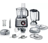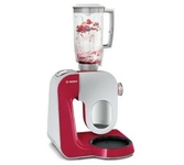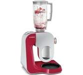 BOSCH MUM58720 1000Вт красный/серебристый Мощность мотора 1000 Вт 3D планетарное вращение насадок: быстрое и идеальное смешивание всех ингредиентов благодаря инновационной технологии вращения насадок одновременно в трех плоскостях 7-ступенчатая регулировка скорости, импульсный режим Электронная регулировка скорости отсек для кабеля EasyArmLift: рычаг автоматически поднимается нажатием на кнопку, заметно облегчая процесс смены насадок Прибор легко чистить благодаря гладкой поверхности. Насадки можно мыть в п/м машине Плавный пуск Автоматическая парковка: насадки останавливаются в положении, удобном для их извлечения Большая чаша 3,9л, из частично полированной нержавеющей стали. Возможность замеса 2,7 кг теста или 1,9 кг дрожжевого теста. Крюк для теста, венчик для жидкого теста, венчик для взбивания Универсальная резка с 3 режущими дисками (двусторонняя терка, двусторонняя шинковка, терка для сыра/ шоколада/ орехов) Блендер TR 1,25л Практичная сумка для хранения насадок : 2 венчика, крюк для те