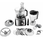 Кухонная машина. Мощность: 700 Вт. Материал корпуса: пластик. 4 скорости. Управление - кнопки (поворотный переключатель). Планетарное вращение MultiMotion Drive. Функция измельчения. Защита от перегрузки. Резиновые ножки. Комплектация: Блендер, Планетарный миксер. (3 привода. 4 насадки: универсальная резка с 3-мя дисками, венчик для взбивания, венчик для жидкого теста, крюк для теста). Емкость чаши: 3,8 литра (металл). Отсек для шнура. Металлические насадки можно мыть в посудомоечной машине