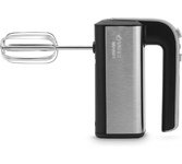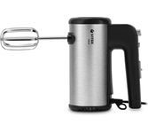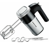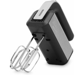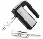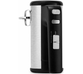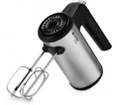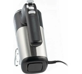 Миксер ручной. Мощность: 700 вт, Число скоростей; 5, Турборежим, Венчик для взбивания: 2, Крюки для замешивания теста, Количество насадок: 4, Кнопка отсоединения насадок, Материал корпуса: сталь/пластик, Длина сетевого шнура: 120 см, Цвет: Черный/серебро
