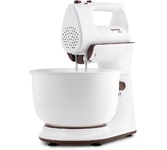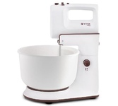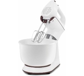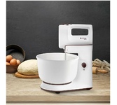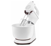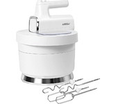 Характеристики Максимальная мощность: 800 Вт Номинальная потребляемая мощность: 450 6 скоростных режимов Функция«ТУРБО» (максимальное увеличение скорости) Кнопка извлечения насадок Кнопка фиксатора миксера КОМПЛЕКТАЦИЯ: Cъемная вращающаяся чаша (3,5 л) Стационарная чаша (3,5 л) Венчики для взбивания яиц и крема Насадки для замешивания теста Защитная крышка чаши с отодвигающимся прозрачным окошком Cкребок