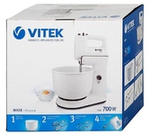 Миксер Viconte VC-1343 1000 W, Миксер с чашей, 1000 W, 5 скоростей работы, металлическая вращающаяся чаша 4,0 л для смешивания, кнопка извлечения насадок, двойной набор насадок: два венчика для взбивания яиц и кремов, две насадки для размешивания тяжелого теста, смешивание жидкостей, замешивание теста, приготовление пюре, взбивание сливок и белков.