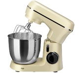 1300 Вт 8 скоростей, импульсный режим. В комплект входит венчик для взбивания, крюки для теста,лопатка для перемешивания, защитный обод 3 насадки Материал чаши — нержавеющая сталь Ёмкость чаши 4,5 л Прорезиненные ножки Цвет бежевый Срок гарантии 12 мес