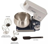 Планетарный миксер. Мощность: 1000 Вт Количество скоростей: 6 Чаша: 3.5 л Количество насадок в комплекте: 3 шт Насадки: лопатка для перемешивания В комплекте: крышка для чаши Особенности: планетарное вращение, Цвет: Черный