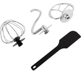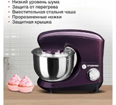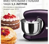 Мощность 1000Вт Объем чаши 4,5л. Низкий уровень шума Импульсный режим 8 скоростных режимов Основные аксессуары: Лопатка для перемешивания, венчик для взбивания, крюк для замешивания теста Дополнительные аксессуары: разделитель белка и желтка, силиконовая лопатка