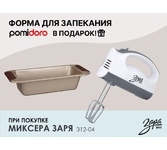 Мощность 500Вт. 5 скоростей. Режим Турбо. Насадки: 2 насадки для взбивания яиц и крема; 2 насадки для замеса тяжелого теста. Материал корпуса пластик.