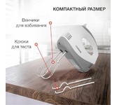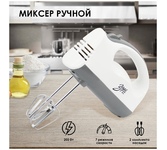 Миксер ручной, мощность 300 Вт, 5 скоростных режимов, 2 венчика для взбивания, 2 крюка для замешивания теста, кнопка извлечения насадок, легкий и удобный в использовании, длина сетевого шнура 1.1 м, электропитание 220-240 В, 50/60 Гц