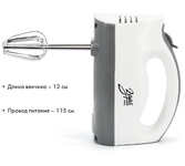 Мощность 250 Вт. Кол-во скоростей 5. Пара насадок для взбивания. Кнопка освобождения насадок. Экологичный пластиковый корпус.