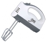 Миксер,150W: 7 скоростей работы, кнопка извлечения насадок, двойной набор насадок: два венчика для взбивания яиц и кремов, две насадки для размешивания тяжелого теста, смешивание жидкостей, замешивание теста, приготовление пюре, взбивание сливок и белков.