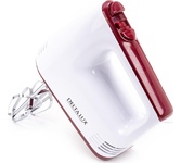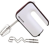 Номинальная потребляемая мощность 400 Вт, Миксер предназначен для смешивания продуктов, создания однородной массы и обогащения взбиваемой жидкости воздухом, Миксером взбивают и замешивают яйца, сливки, коктейли, мусс, омлет, легкое тесто, пюре, соусы и другие продукты, Цвет: белый с бордовым, Кнопка извлечения насадок, 2 венчика для взбивания яиц и крема, 2 насадки для замешивания теста, 5 скоростных режимов, Режим "ТУРБО". С этим товаром рекомендуем также посмотреть: