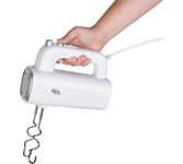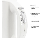 Миксер ручной, мощность 400 Вт, 5 скоростных режимов, режим ТУРБО, скорость вращения до 1400 об/мин, 2 венчика для взбивания, 2 крюка для замешивания теста, кнопка извлечения насадок,легкий и удобный в использовании, длина сетевого шнура 1.1 м, электропитание 220-240 В, 50/60 Гц