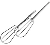Миксер, 350W, 7 скоростей работы, кнопка извлечения насадок, двойной набор насадок: два венчика для взбивания яиц и кремов, две насадки для размешивания тяжелого теста, смешивание жидкостей, замешивание теста, приготовление пюре, взбивание сливок и белков