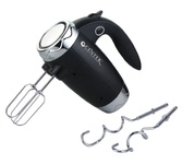 Миксер, 250W, 5 скоростей работы, кнопка извлечения насадок, двойной набор насадок: два венчика для взбивания яиц и кремов, две насадки для размешивания тяжелого теста, смешивание жидкостей, замешивание теста, приготовление пюре, взбивание сливок и белков.