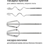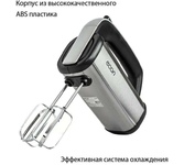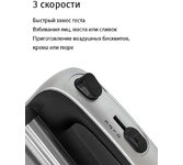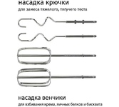 Миксер ручной, максимальная мощность: 300 Вт, 5 скоростей, переключатель скоростей, режим Турбо, венчики для взбивания яиц и крема, крючки для замеса теста, простота в использовании и чистке, эффективная система охлаждения