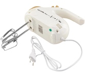 Миксер, максимальная мощность: 350 Вт, 5 скоростей, переключатель скоростей, Режим Турбо, венчики для взбивания/смешивания яиц и крема, крючки для замеса теста, простота в использовании и чистке.
