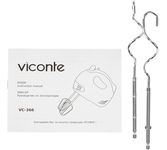VICONTE VC-366 Миксер Viconte VC-366 350 W, Миксер, мощность 350 W, 5 скоростей работы, двойной набор насадок: два венчика для взбивания яиц и кремов, две насадки для размешивания тяжелого теста, смешивание жидкостей, замешивание теста, приготовление пюре, взбивание сливок