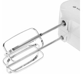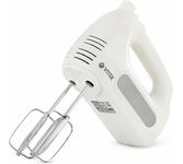 Миксер, Мощность 500 Вт, 5 скоростных режимов, Режим ТУРБО, 2 венчика для взбивания, 2 крюка для замешивания теста, Скорость вращения до 1400 об/мин, Защита от перегрузки, Насадки из нержавеющей стали , Кнопка извлечения насадок, Эргономичный дизайн, Длина сетевого шнура: 1 м, Напряжение 220-240 В, 50-60 Гц