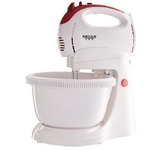 Мощность 200Вт. 5 скоростей работы. Турбо режим. Вращающаяся чаша, объем - 1,5 л. Стальные венчики для взбивания и насадки для замешивания теста.