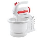 Миксер, максимальная мощность: 350 Вт, 5 скоростей, переключатель скоростей, режим Турбо, венчики для взбивания яиц и крема, крючки для замеса теста, простота в использовании и чистке, хранение шнура в корпусе миксера