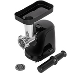 Мясорубка, Мощность 2000 Вт, Производительность 1,8 кг/мин, Функция "Реверс" Защита двигателя от перегрузки, Пластиковый лоток, Толкатель для продуктов, Нож из высококачественной стали, 2 решетки в комплекте: 5 мм, 7 мм, Противоскользящие резиновые ножки, Цвет корпуса: Черный