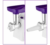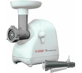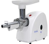 Максимальная мощность 1500 Вт, номинальная мощность 230 Вт, производительность — до 100 кг/час. Функция РЕВЕРС. Комплектуется приставкой — соковыжималкой.; набивки колбасных изделий. Предназначена для получения соков с мякотью из мягких овощей, фруктов, ягод; Защита двигателя от перегрузки; 3 вида решеток для получения фарша разной консистенции - с диаметром отверстий 4,9 мм и 7 мм, а также овальными отверстиями; Удобное хранение ножей и решеток; Высокое размещение шнековой камеры; Функция «реверс» для предотвращения наматывания жилок на шнек; Устойчивые нескользящие ножки для фиксации мясорубки на поверхности стола;