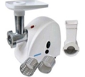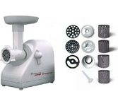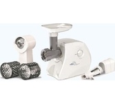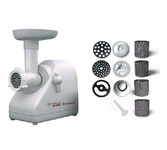 Мощность 1500 Вт * Производительность 1,66 кг/мин * Размеры 0,29 х 0,19 х 0,27 * Вес 3,8 кг * Высокопроизводительная, мощная мясорубка имеющая функцию реверс, позволяющую кратковременно поворачивать шнек в обратном направлении. • функция реверс поможет избавиться от намотавшихся на шнек и пленок • три решетки с отверстиями различного размера, входящие в комплект поставки, позволяют получить фарш различной консистенции. Решетка с отверстиями овальной формы поможет приготовить холодец и нарезать на мелкие кусочки мясо или овощи