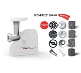 Электромясорубка КЭМ-П2У 304 Пиковая мощность: 300Вт Номинальная мощность: 1800Вт Реверс: есть Цвет: бело Решетки: 3 Шинковки: 4 Тесто/колбасы: есть Соковыжималка: есть