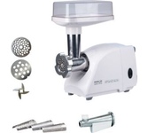 Производительность: 1.2. Количество скоростей: 1. Перфорированный диск для фарша: 2. Функция реверса: есть. Насадка для колбас: в комплекте. Насадка для кеббе: в комплекте. Насадка-терка: отсутствует. Насадка для шинковки: отсутствует. Материал лотка: пластик. Материал корпуса: пластик. Цвет: белый. Мощность: 500. Защита от перегрева: есть. Насадка для кебаба: отсутствует. Насадка для нарезки овощей: отсутствует. Длина сетевого шнура: 1. Толкатель: в комплекте. Прорезиненные ножки: есть. Вес товара: 3. Габариты упаковки (ед) ДхШхВ: 0.33x0.26x0.24. Вес упаковки (ед): 3.7. Гарантия: 12 мес.. Мощность: 1300Вт, при блокировке вала. Размеры (ШхВхГ): 334 х 228 х 153 мм. Количество скоростей: 1. Насадки: для колбас, для кеббе. Мощность: 1300Вт, при блокировке вала. Производительность: 1.2 кг/мин. Функции: реверс, защита от перегрева. Материал лотка: пластик. Материал корпуса: пластик