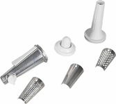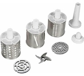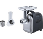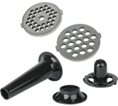 Максимальная мощность 1800 Вт Функция «Реверс» Производительность 1,5 кг/мин 2 диска из нержавеющей стали для крупного и мелкого помола (5 мм и 7 мм) Насадки для терки, резки, шинковки Насадки для приготовления колбас Насадка «Кеббе» Толкатель для продуктов Прорезиненные противоскользящие ножки Защита от перегрева Защита двигателя от перегрузки Номинальная мощность 500 Вт Максимальный уровень шума 80 дБ Электропитание 220-240 В, 50 Гц