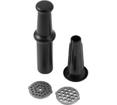 максимальная мощность 1500 Вт, номинальная мощность 230 Вт, производительность — 50 кг/час, Система реверса. Насадки: насадка-терка, насадка для приготовления колбас, насадка для шинковки, насадка для кеббе, диск для фарша Диск для фарша 2 в комплекте, диаметр отверстий 5 мм Насадка-терка 2 в комплекте Насадка для шинковки 1 в комплекте Материал лотка пластик Материал корпуса пластик Можно мыть в посудомоечной машине Прорезиненные ножки Дополнительная информация решетка с овальными отверстиями