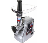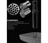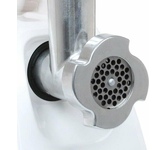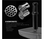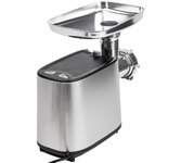 Максимальная мощность 1500 Вт, номинальная мощность 230 Вт, производительность — 1,7 кг/мин Защита двигателя от перегрузки; 3 вида решеток для получения фарша разной консистенции - с диаметром отверстий 4,9 мм и 7 мм, а также овальными отверстиями; Удобное хранение ножей и решеток; Высокое размещение шнековой камеры; Функция «реверс» для предотвращения наматывания жилок на шнек; Устойчивые нескользящие ножки для фиксации мясорубки на поверхности стола;